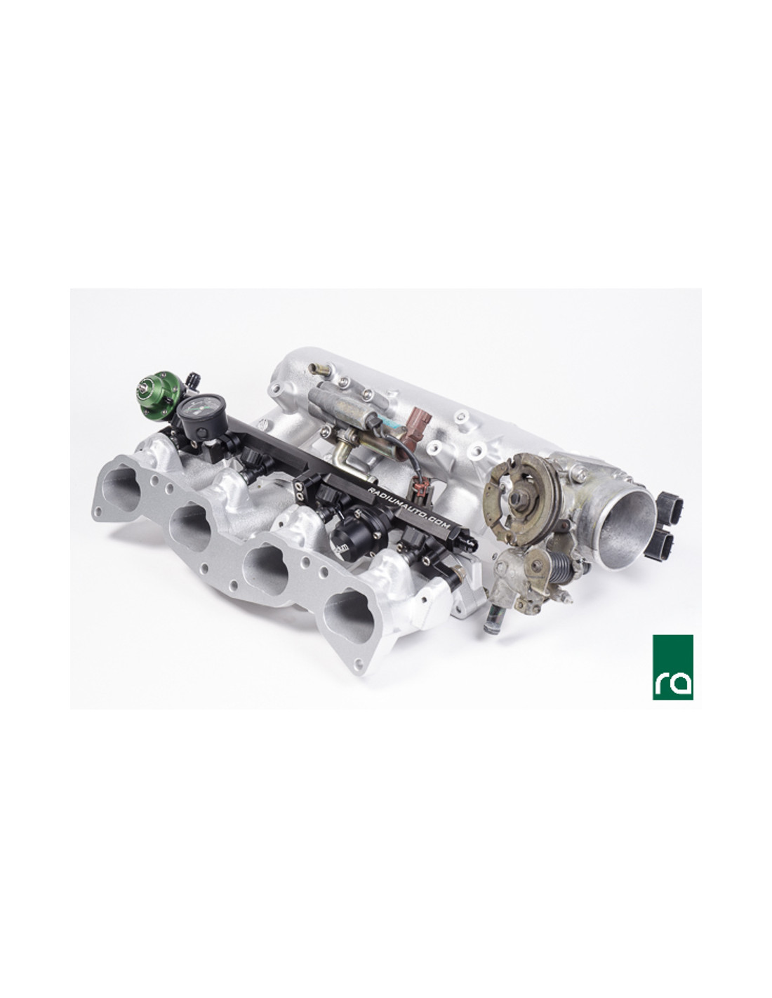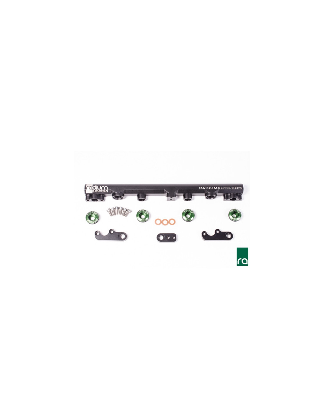 Bolt-on installation; Converts to top-feed fuel injectors with 14mm O-rings; CNC machined Aluminum; Laser etched and anodized; Stainless steel hardware; E85 compatible