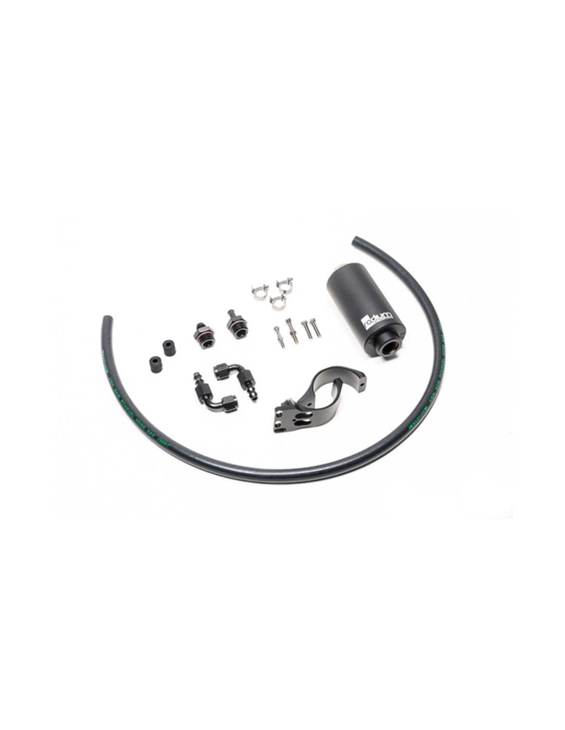 Fuel filter kit that replaces the OEM fuel filter. Mounts in the same location under the hood. Filter element is 6 Mikron microglass and is not serviceable. Refer to www.radiumauto.com for application list.